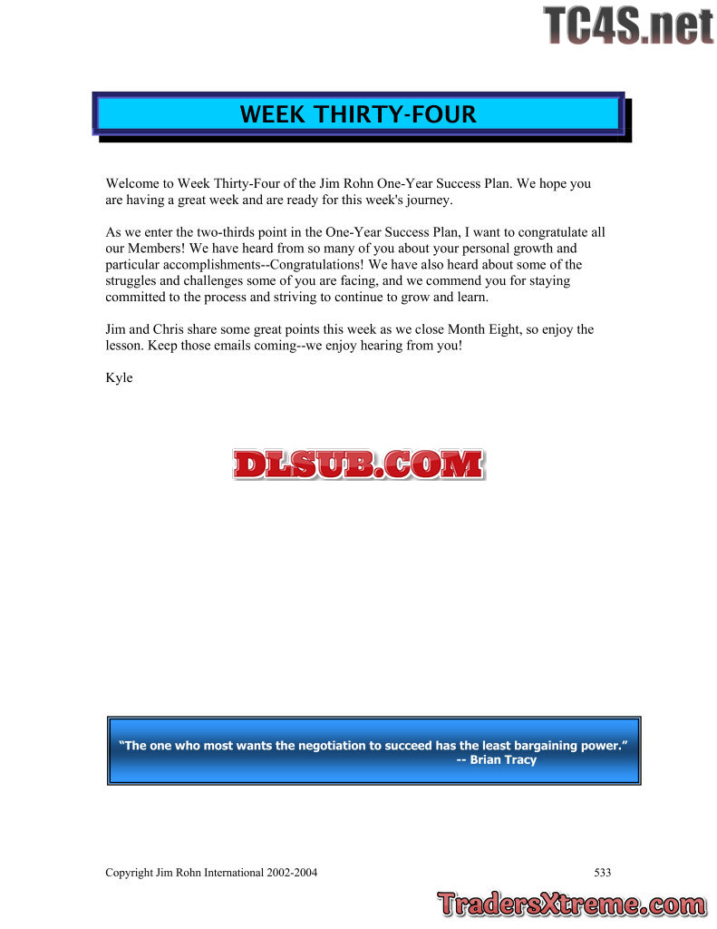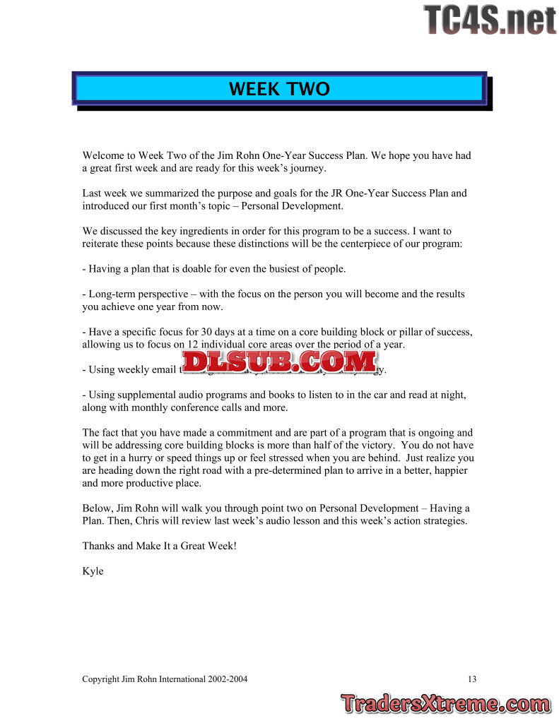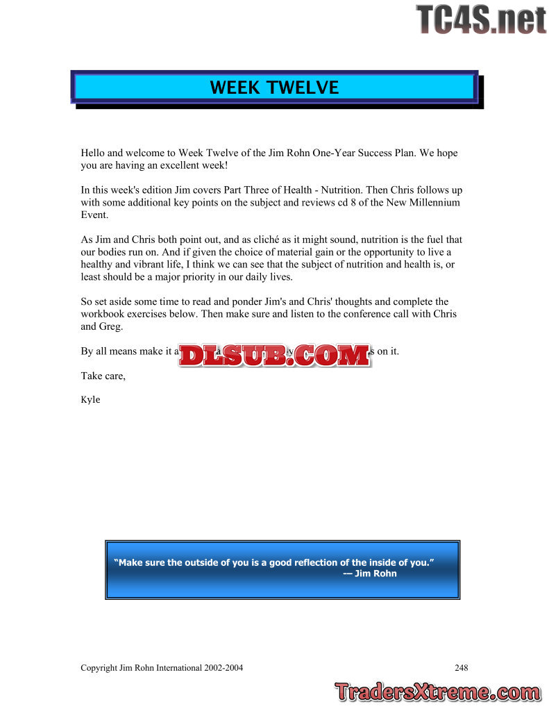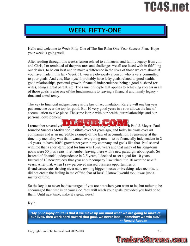 Jim Rohn One Year Success Plan
