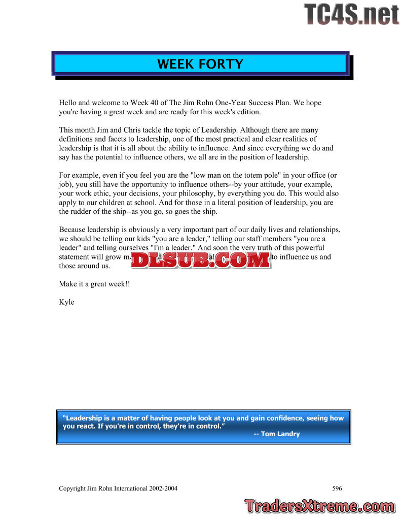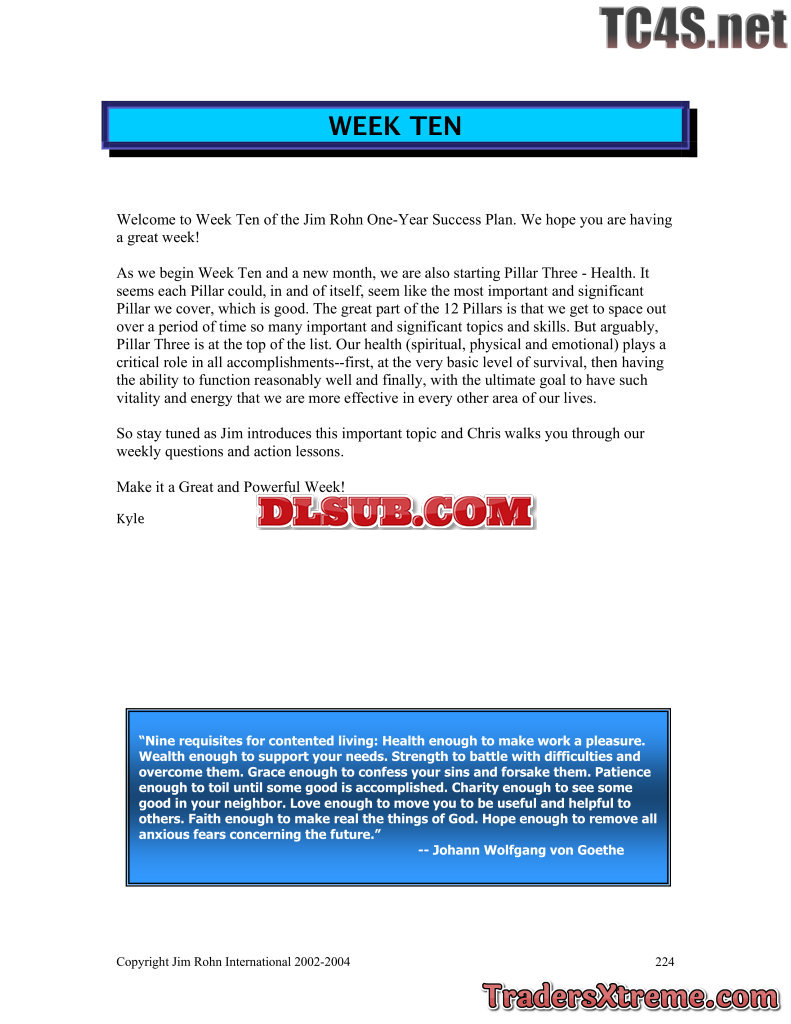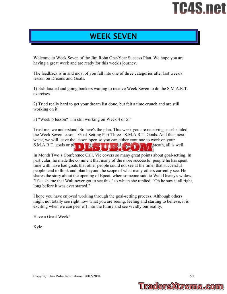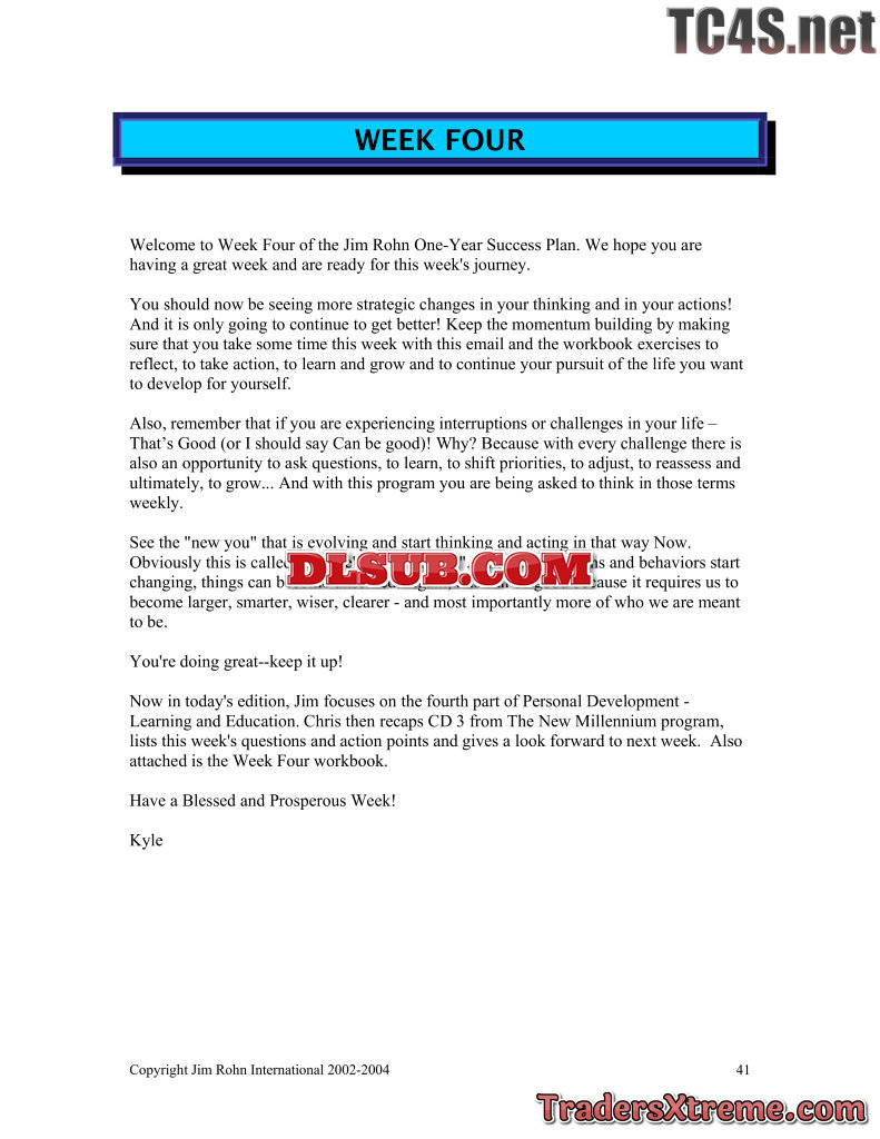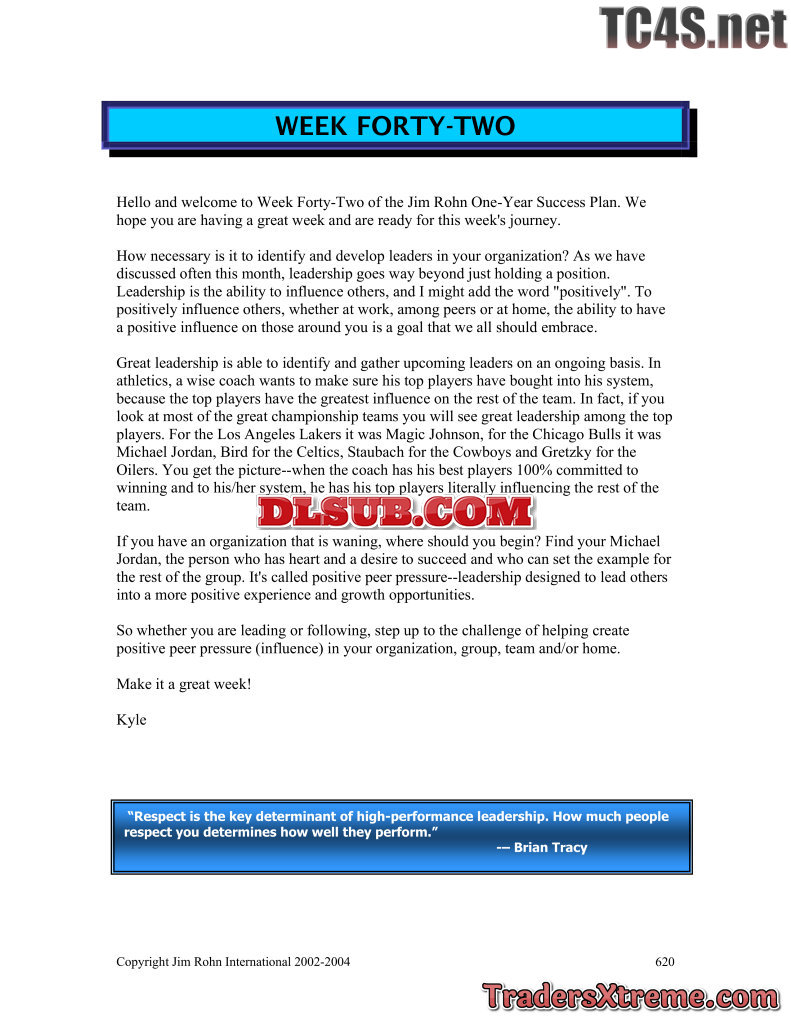 Jim Rohn One Year Success Plan