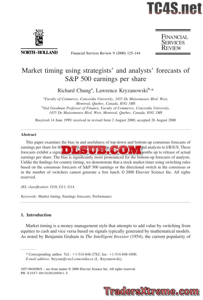 Market Timing Using Strategists And Analysts Forecasts Of S - JPG Image File