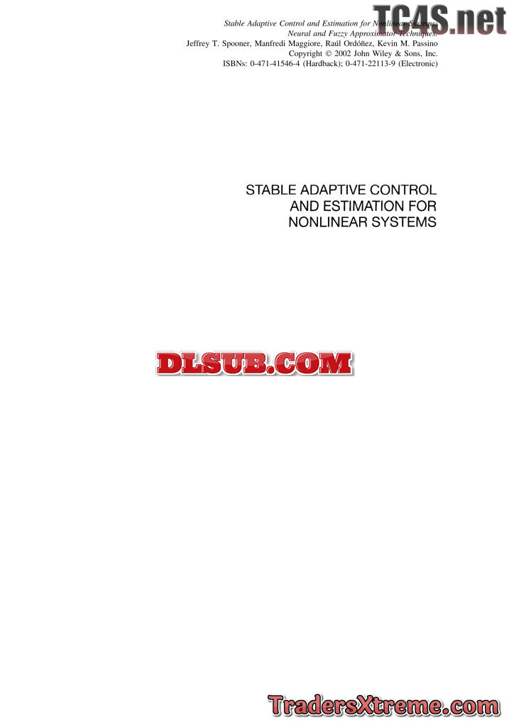 Jeffrey Spooner Stable Adaptative Control For Nonlinear Systems
