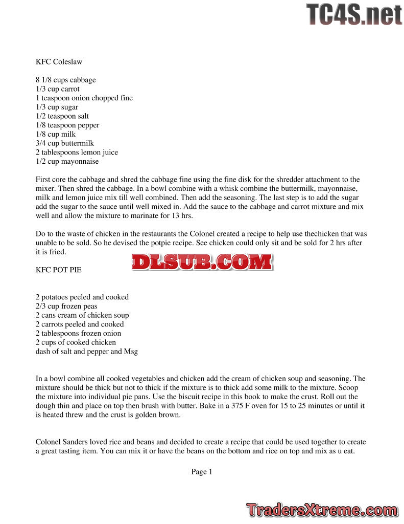 Authentic Kentucky Fried Chicken Recipes - JPG Image File