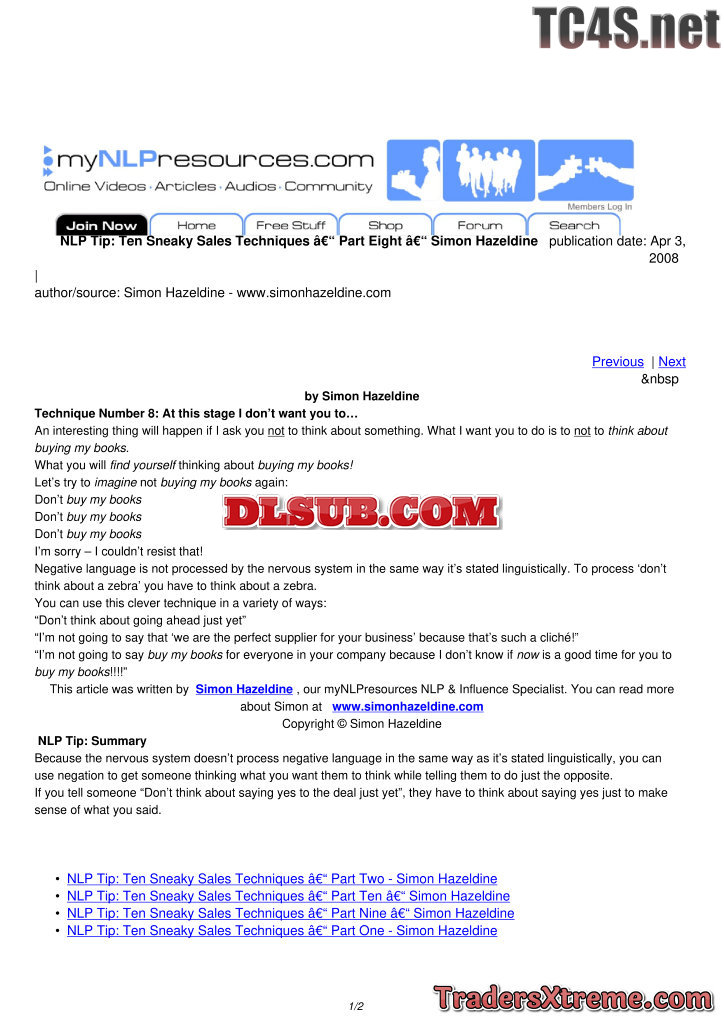Ten Sneaky Sales Techniques Part One Simon Hazeldine - JPG Image File