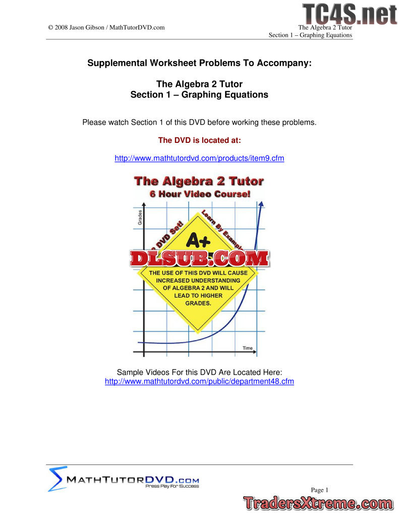 01 Algebra 2 Tutor Graphing Equations - JPG Image File