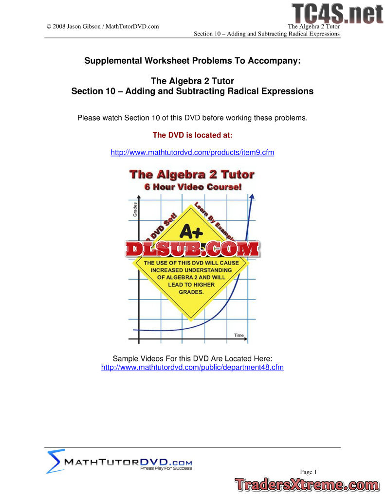 10 Algebra 2 Tutor Add Subtract Radical Expressions - JPG Image File