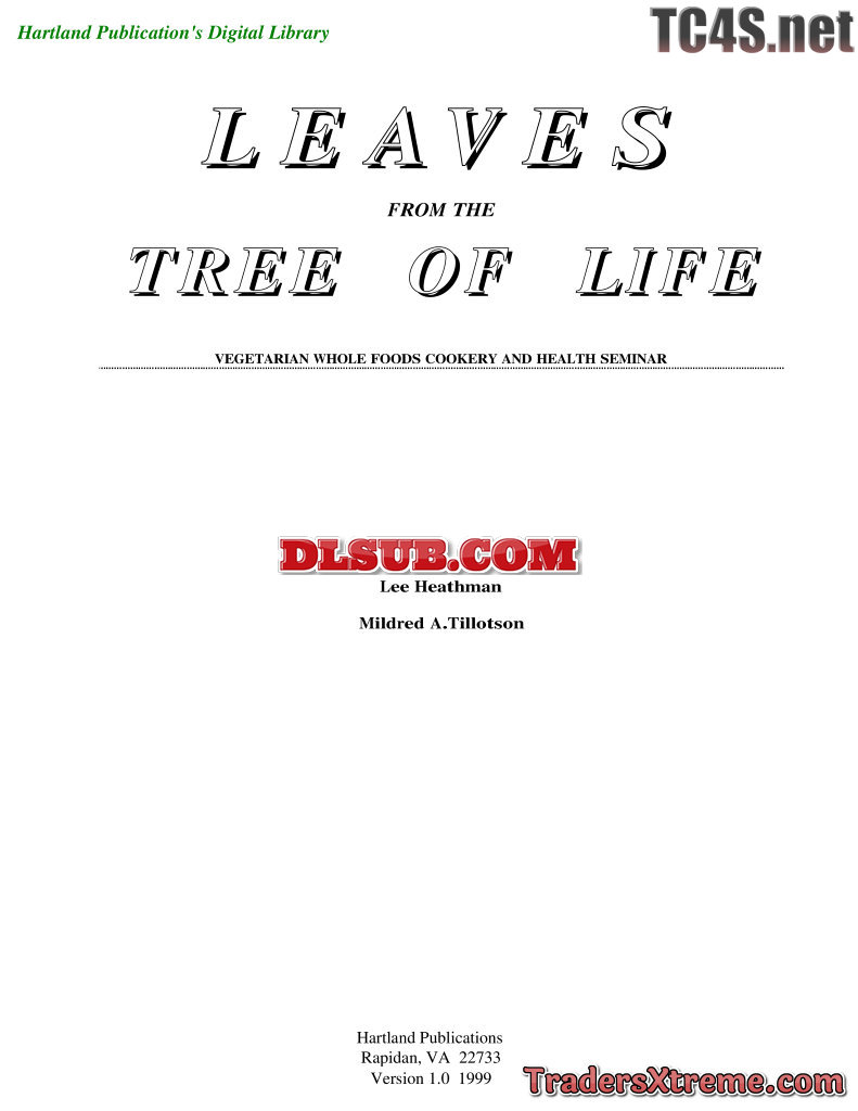Leaves From The Tree Of Life Vegan Cookbook - JPG Image File