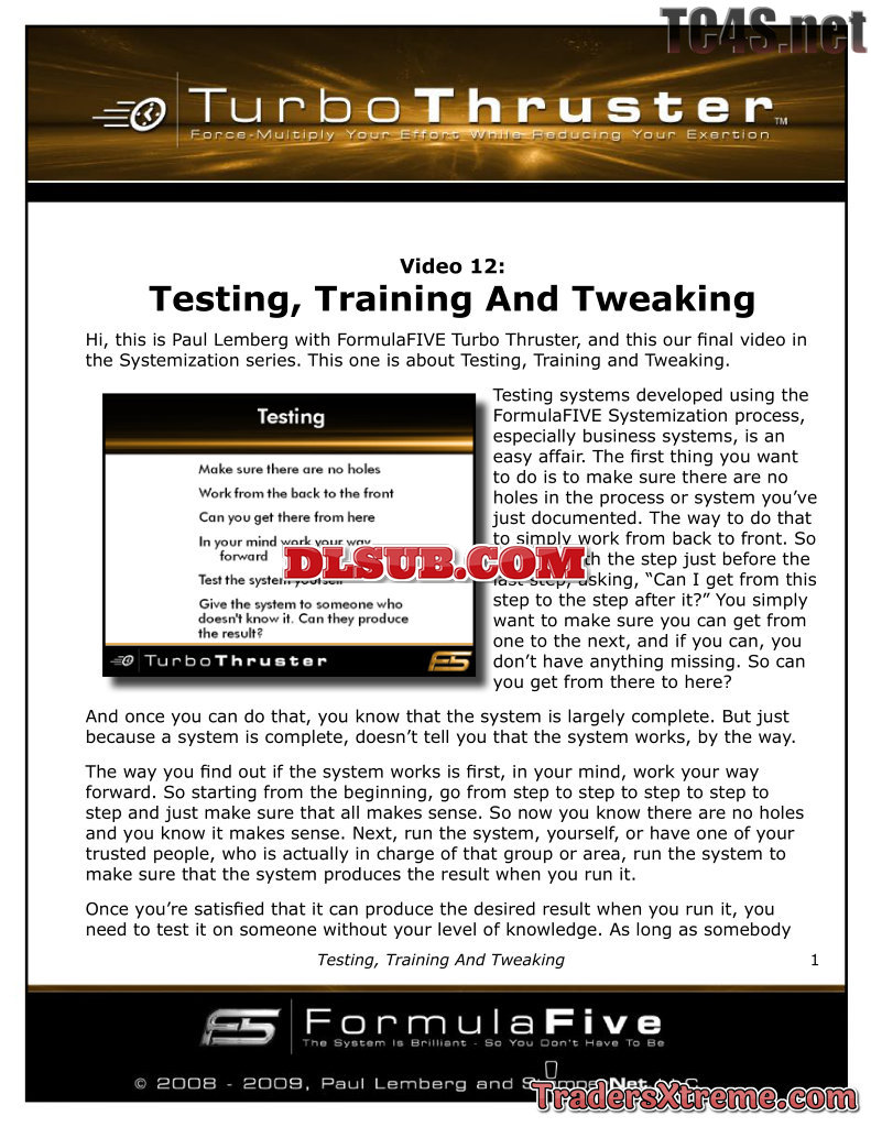 Tt12 Testing Training And Tweaking