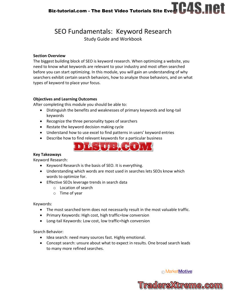 Keyword Research Study Guide And Workbook - JPG Image File