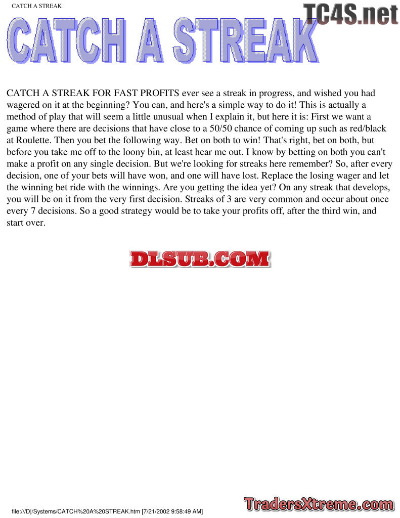 Catch A Streak System For Roulette