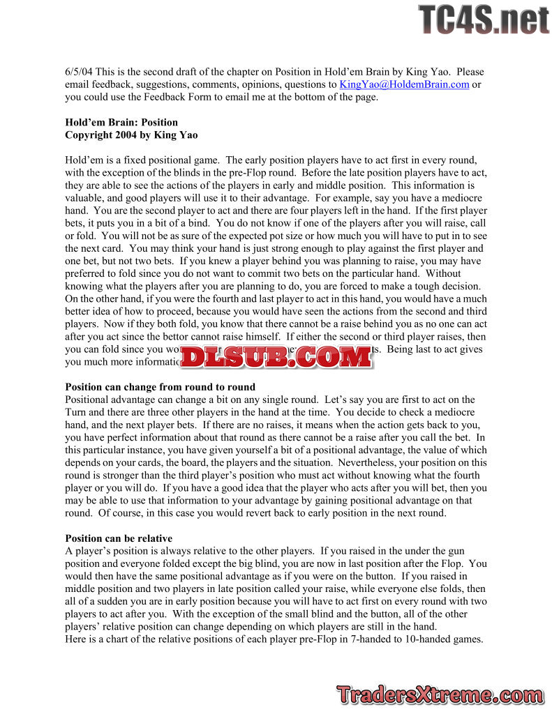 King Yao Holdem Brain