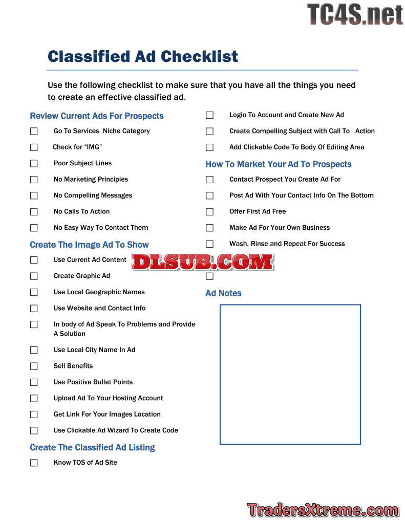 Classified Ad Checklist - JPG Image File